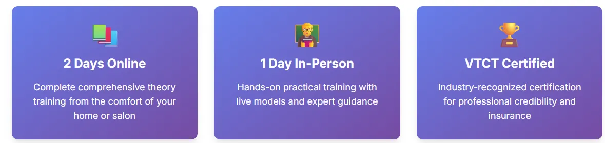 3 days total: 2 days online (self-paced, complete at your convenience) + 1 day in-person practical training with live models.
