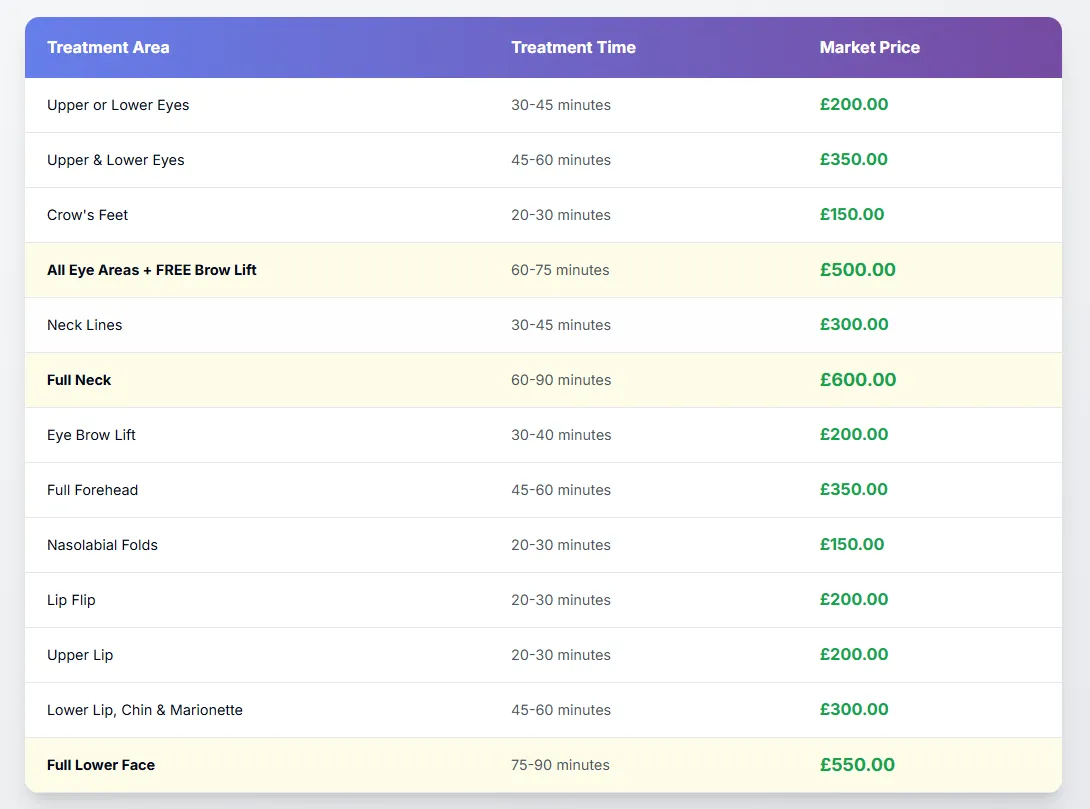 These are the current market prices UK clinics and salons are charging for plasma treatments: